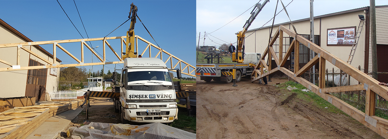 Ahşap veya çelik makas olarak uluslararası kodlara göre üretilir.